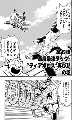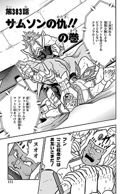 3代目グレートと共にエクサベータ―たちに挑むキン肉マン。グレート初代の技、2代目の魂を受け継いだような戦いぶりで優位に試合を進めていく。しかしエクサベータ―たちが強力なツープラトン攻撃で襲い掛かり――!?