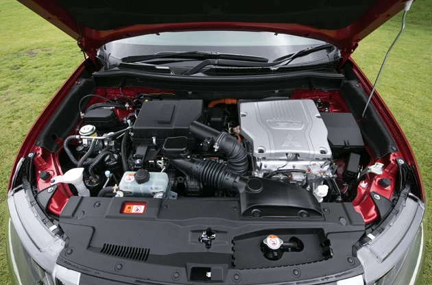 だが、その電池技術や電動化技術を応用して13年に投入されたのがアウトランダーPHEV。ピュアEVではないが、既存のSUVに当時トンでもなく画期的なPHEVを搭載。駆動システムは前代未聞のツインモーター4WDで、前後タイヤをそれぞれ別の82馬力モーターで駆動。電源としてピュアEV並みの12kWhのリチウムイオンバッテリーを搭載。2リットルガソリンエンジンを一部高速で駆動用として使いつつ、ほぼ発電機として使用した。