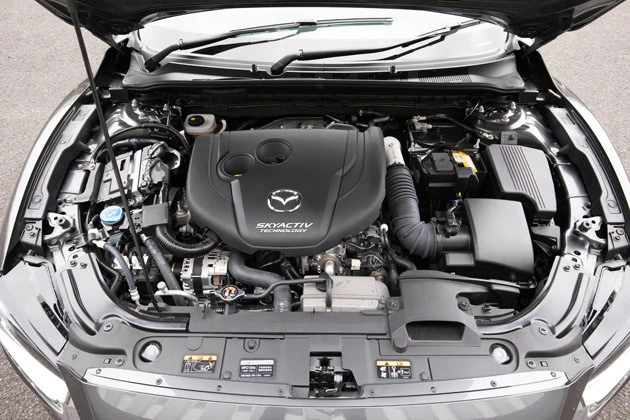 日本車において、セダンやワゴンにディーゼルエンジンを設定しているのは、アテンザの独壇場といえる部分。2.2リットルのディーゼルターボエンジンは、最高出力こそ2.5リットルのガソリンエンジンと同じ190馬力だが、2000回転で45.9kgmもの分厚いトルクを発生する。