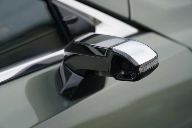 このミラーは、車両のフロントドア外側のカメラで撮影した車両左右後方の映像を、車内のフロントピラー部(車両フロントガラス左右の柱の部分)に設置された5インチディスプレイに表示する仕組み。今回の試乗車にもこのデジタルアウターミラーを装着したモデルが用意されていた。