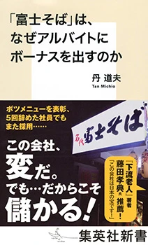 ●丹 道夫(たん・みちお)ダイタンフード株式会社会長。1935年12月15日生まれ。愛媛県西条市出身。中学卒業後、地元での八百屋、油屋での丁稚奉公に始まり、その後は上京しては失敗して帰郷を繰り返すも、友人と立ち上げた不動産業で成功。66年に富士そばの前身となる「そば清」を始め、72年にダイタンフード株式会社を設立して立ち食いそば業に専念。現在はグループ会社8社、国内113店舗を展開し台湾、フィリピンにも出店。「丹まさと」名義で作詞家としても活躍し、これまでに30曲以上が発売されている。著書に自身の半生を振り返った『らせん階段一代記』、富士そばの経営学を記した『商いのコツは「儲」という字に隠れている』がある