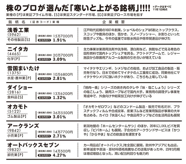 なるほど! であれば、ここからは今年は厳冬が来ると仮定して、大幅な値上がりが見込める銘柄を株のプロたちに聞いていこう。