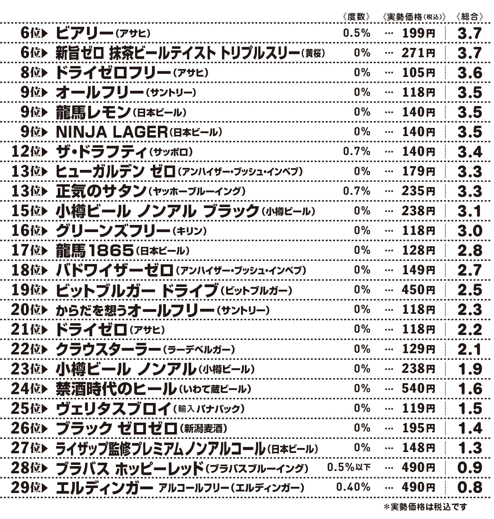 はんつ 例えばアサヒの「ドライゼロフリー」(8位)は、まろやかさの中にちゃんとコクがあって、個人的にすごく気に入りました。アルコールやカロリーはもちろん、人工甘味料もゼロでこのクオリティですから、こういう製品がもっと増えてほしいですね。