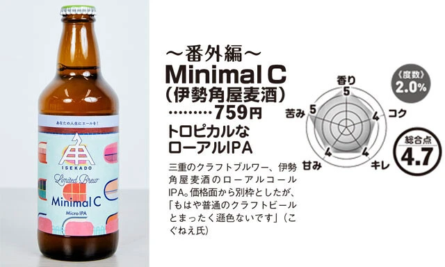 ――バランスでいうと、伊勢角屋(いせかどや)麦酒の「Minimal C(ミニマル・シー)」の評価はずぬけていますね。