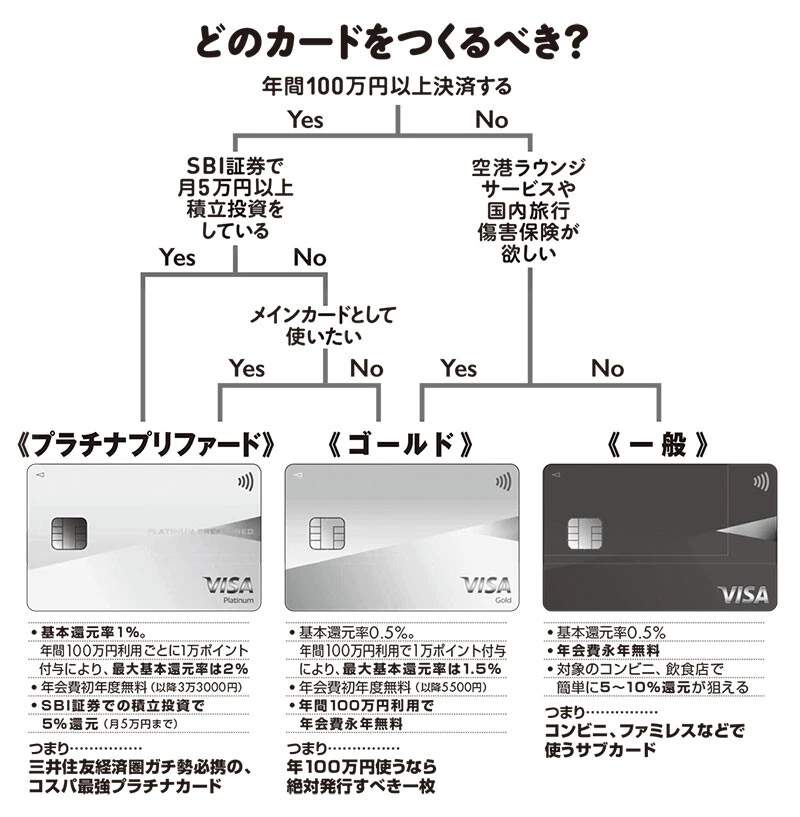 菊地 イチ押しはプラチナです。年会費こそかかるものの、SBI証券で積立投資をすれば5%還元のボーナスが得られ、年間最大3万ポイントがもらえるので、実質年会費は3000円と言っていい。