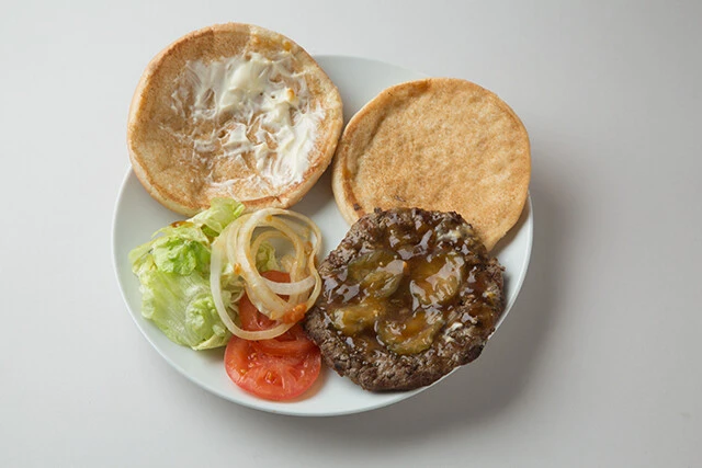 僕がこの店で本当にオススメしたいのはテリヤキワッパー(640円)。100%ビーフのパティはおよそ125g。バンズの直径は約13㎝と食べ応えあり。この大きさを考えれば、600円超えも納得。レタスに加え、トマト、オニオン、ピクルスなど野菜が豊富に入っているのもほかにはないポイントです」