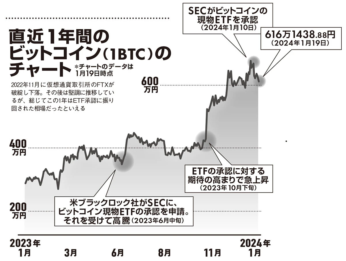 SECは現物ETFの承認を渋っていましたが、裁判所に『ビットコイン先物と現物は非常に類似した金融商品であるにもかかわらず、現物ETFを認めないのは恣意(しい)的で気まぐれ』と言われる始末。現物ETFの認可は時間の問題だったのです」(伊藤氏)