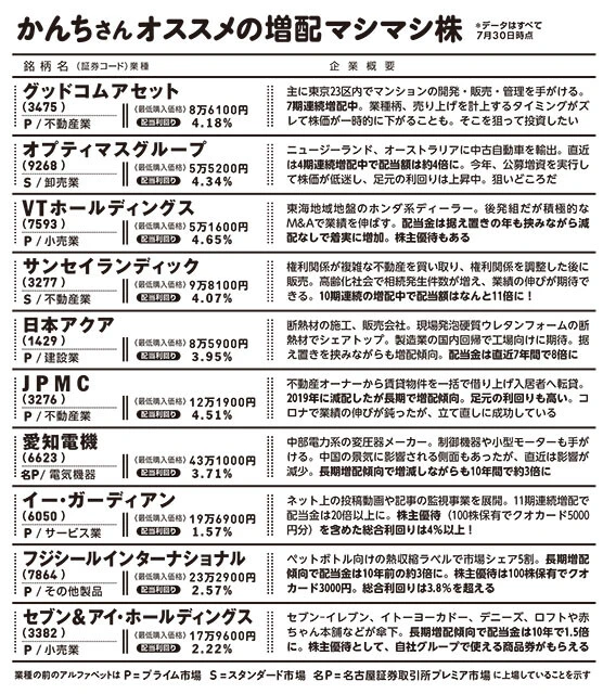 両氏が選ぶ注目企業を表にまとめた。持つだけでどんどんお金が増える増配ラッシュ、乗らない手はない!