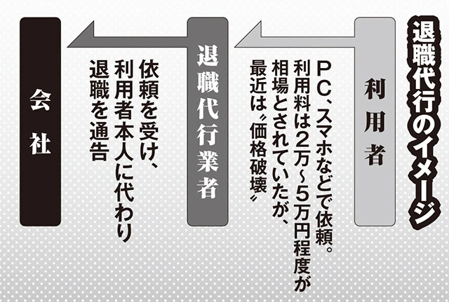 取材の時点で確認できた最安値は「退職あんしん代行」という業者で、ホームページには「2980円で即日対応」と記されている。しかし、過去には「500円」という衝撃の価格でビジネスを行なっていた業者もあったという。
