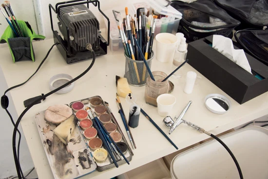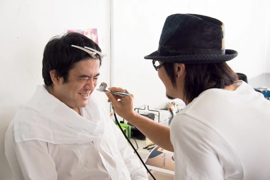 使用する道具はシンプルで、ドーランとボディペイント用の塗料のみ。しかも、モノクロで仕上げるため色も2色だけ。