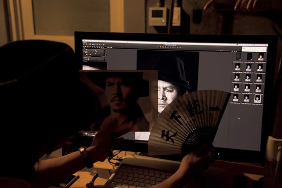輪郭を黒く塗っても塗っても、なかなか顔が小さく見えない! 顔の幅をさらに削り、最高の1カットを撮るために試行錯誤。