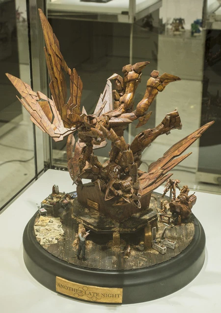 1位は木彫り風のウイングガンダム。プラモを木目塗装する超絶技術だけでなく、角度によって様々なストーリーが展開する