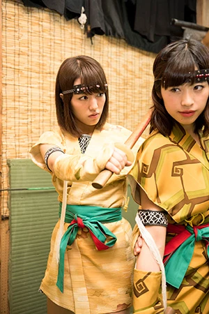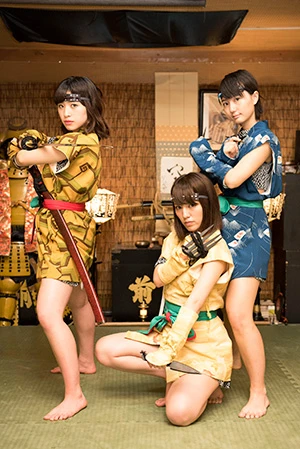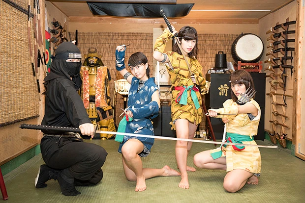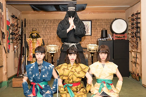 忍者修行するアプガメンバー! 左から新井、仙石、関根『週刊プレイボーイ』創刊50周年を記念して行なわれる、アイドルが“グラビア”と“ライブ”で闘うバトルカーニバル『グラバカ!』。