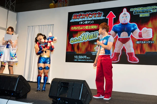 さらに、関連商品としてバンダイ公式ショッピングサイト「プレミアム バンダイ」では、6月2日からキンケシを約10倍の全高450mmまで拡大してフルカラー彩色した新商品「超デカキンケシ キン肉マン(フルカラーVer.)」の予約受付が開始されることも告知され、イベントのラストでは再び串田アキラさんが登場。TVアニメの2代目主題歌である「炎のキン肉マン」を熱唱して、会場の興奮覚めやらぬままこの日のステージは終了した。