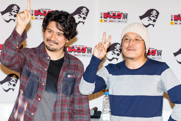 9月22日、「ジャンプ展」が開催されている六本木ヒルズ内でトークショーを行なった江口寿史(右)とうすた京介『すすめ!!パイレーツ』『ストップ!!ひばりくん!』の江口寿史先生と『セクシーコマンドー外伝 すごいよ!!マサルさん』『フードファイタータベル』のうすた京介先生による世代を超えた異色のトークショーが、9月22日に東京・森アーツセンターギャラリーで開かれた。