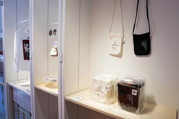 写真展では、モトーラちゃんの直筆イラストをプリントしたポシェットも販売!