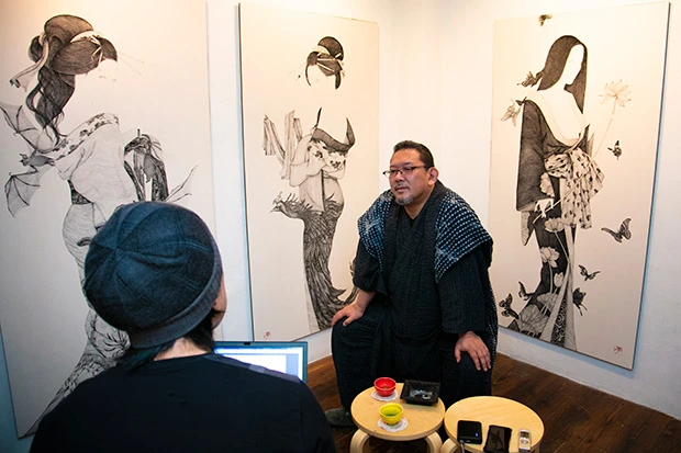 日常から作務衣姿の風体で大阪ミナミを拠点とする、その素顔とは…。前回は漫画家を目指していた子供時代から米留学の経緯などを伺ったがーー。(聞き手/週プレNEWS編集長・貝山弘一)