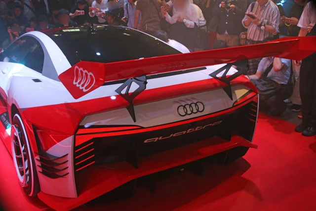 そんな同車が電気自動車特有の静かな駆動で登場するや、会場から大きな拍手。ゲームやアウディのファンたちは目を輝かせて、その希少な一台に見惚れていた。