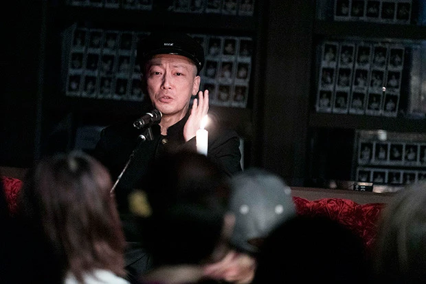 村上ロック氏による"オープニング怪談"でスタートした「週プレ怪談・盆」。新宿・歌舞伎町の怪談BAR「スリラーナイト」で毎夜怪談ライブを行なう怪談師・村上氏が、幕開けにふさわしい怪奇譚(かいきたん)でのっけから週プレ酒場の空気を漆黒に染め上げる。