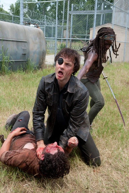 総督との戦いを終え、次に遭遇したのは生存者をおびき寄せる人肉食集団! 足を食べられてしまう仲間も。