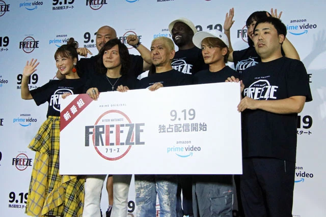 『FREEZE』は『ドキュメンタル』に続き、松本が手掛けるアマゾンプライムビデオのバラエティ番組。松本が考えた数々の仕掛けに対し、出演者たちはリアクションすることなく止まらなければならない。動いた時点で脱落となり、優勝者には100万円の賞金がもらえる。
