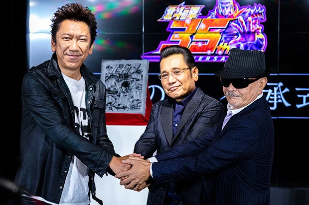 その生誕35周年を記念するイベント"伝承式"が9月13日、東京・赤坂にて開催され、多くの報道陣が集まる中、作者である武論尊(ぶろんそん)・原哲夫のふたり、そしてこの35周年のテーマソング「202X」を製作したミュージシャンの布袋寅泰氏が登壇した。