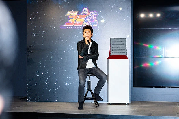 また、武論尊・原哲夫からのオファーを受けて製作したという35周年テーマソング「202X」のMVを初披露。布袋氏に加え、CGを駆使した形でケンシロウ、ラオウが映像内に登場し、3ピースバンドを組んで楽曲を演奏するという夢の共演映像が上映された。さらに、布袋氏が書きおろした同楽曲の楽譜も1枚の「石版」として後世へ遺されることに。