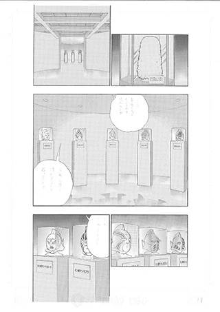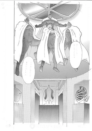 過去のことじゃない、再び闘うべき時がまさに今、来ているんだいう緊張感と期待感がそれで読者に伝わるかなと思いまして......それでこの博物館というシチュエーションと、そこに4人が集まって会話するというこの場面だけは、シリーズ開始前から決まっていたんです。それだけ長く温めていたものがようやくページという形になったので、やっぱり感慨深かったですね。それでこの一枚を選びました。