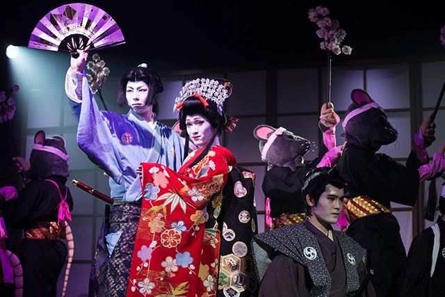 劇場で公演されるのは、「握りますか? 日本」をキャッチコピーに忍者や芸者といった日本伝統の文化をはじめ、サラリーマンやヲタクなど現代日本の象徴的な要素をごった煮にしたジャンル分け不能なものだ。