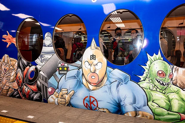 大阪のなんばと関西国際空港を結ぶ南海電鉄の特別急行列車"ラピート"の特装ラッピング号「泉佐野市70周年×キン肉マン40周年 友情タッグラピート」が3月下旬より運行中!