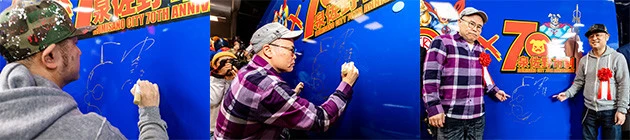 あれから40年経った今、当時は誰も知らなかった、世に出てもいなかった僕らのキャラクターがこんなに大々的にラッピングされた特別号で現実に走っている。それは本当に不思議な感覚だけど、同時にこんなにうれしいことはない。ぜひ多くの人に乗ってもらって、皆さんに話題にして喜んでもらいたい」と語った。