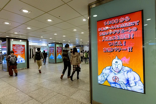 その特別号に『キン肉マン』作者・ゆでたまご先生が自ら仕上げのイラスト&サインを入れる"入魂式"が3月31日の日曜日、その発車駅である大阪ミナミのなんば駅ホームにて開催された。