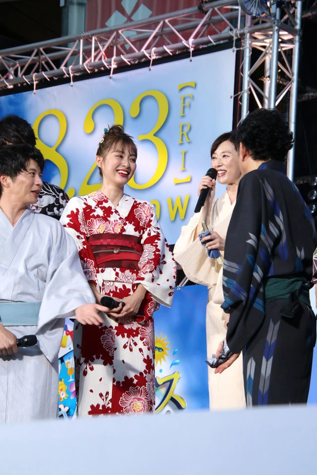 田中が映画の撮影について「お泊りロケも楽しかったよね。初めて真面目な話もした」と、林に振ると「楽しかったです。それも平成最後の満月の夜で」と返答。ロマンティックなシチュエーションだったことが明かされ、集まった700人から、この日一番の黄色い声も。さらに、吉田が「(自分は)いつもいないんだよね。いつもこのふたりが仲良くしてるんだよ」と、ドラマの役と同じように"乙女心"をみせると会場は笑いに包まれた。
