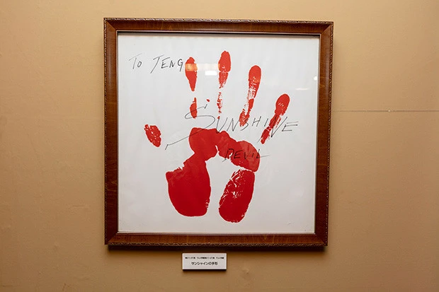 大阪にある串カツの名店・てんぐに寄贈されたサンシャインの手形