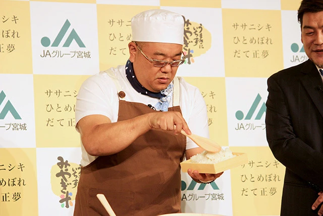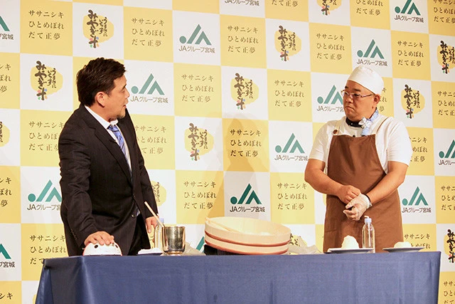 同イベントは、宮城県産の米をPRすることを目的に開かれ、人気の「ひとめぼれ」や「ササニシキ」のほか、新ブランドである「だて正夢」を紹介。サンドウィッチマンのふたりは3年連続で"みやぎ米"のメッセンジャーに選ばれ、出演する新CMもあわせて発表された。