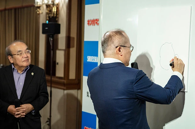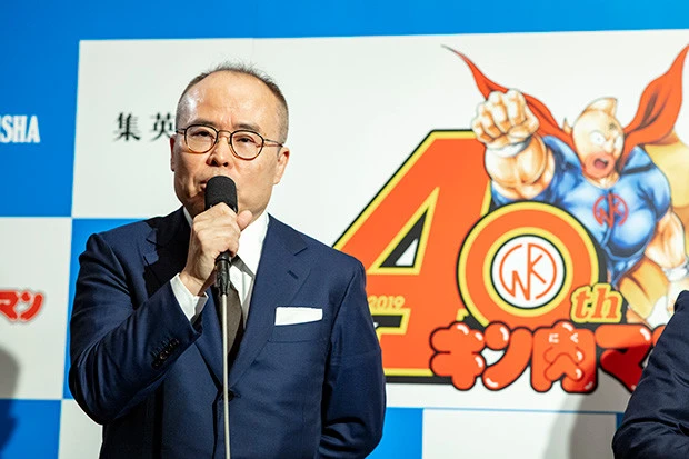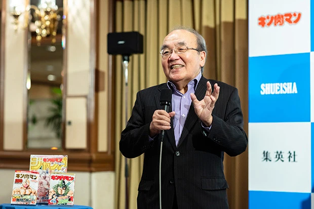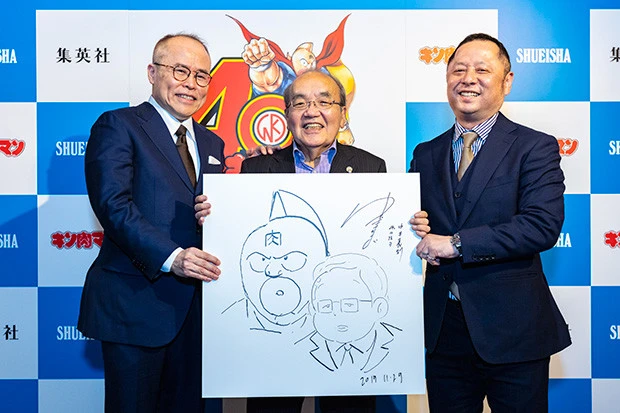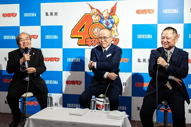 『キン肉マン』40周年を記念して、3冊同時発売が決定! 帝国ホテルでお披露目の記者会見が行なわれた。先生方もスーツでキッチリ!
