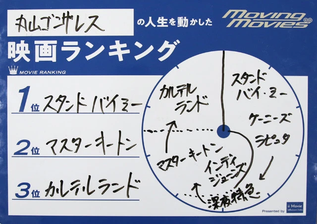 『さんまのスーパーからくりTV』『中居正広の金曜日のスマたちへ』など、数多くの人気番組を手がけてきたバラエティプロデューサー角田陽一郎氏が聞き手となり、著名人の映画体験をひもとく『週刊プレイボーイ』の連載『角田陽一郎のMoving Movies~その映画が人生を動かす~』。
