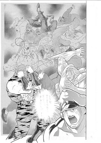 今回この一枚を選ばせてもらったのは、これを描いてる最中、面白いことに私自身もまたここでのブロッケンJr.と全く同じような感覚に襲われたんですよ。......といっても私の場合は決してブロッケンのようなトラウマではなく、どちらかといえば良いほうの思い出。このバックシーンを描きながら私の頭の中に次々と思い起こされてきたのは、当時のジャンプ編集部の執筆室で、まさにこのラーメンマンVSブロッケンJr.戦の原稿を執筆していた時のことでした。