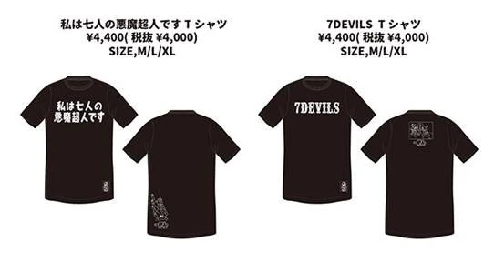 「私は七人の悪魔超人ですTシャツ」、「7DEVILS Tシャツ」2種 各4400円(税込) サイズM、L、XL