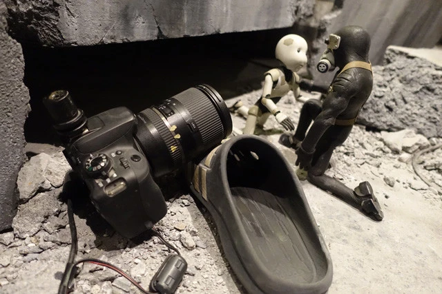 時には部屋にあったサンダルでカメラのアングルを固定。使えるものはなんでも使った