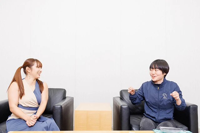 石田夏穂氏(右)と才木玲佳さん(左)の対談が実現
