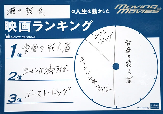 『さんまのスーパーからくりTV』『中居正広の金曜日のスマたちへ』など、数多くの人気番組を手がけてきたバラエティプロデューサー角田陽一郎氏が聞き手となり、著名人の映画体験をひもとく『週刊プレイボーイ』の連載『角田陽一郎のMoving Movies~その映画が人生を動かす~』。