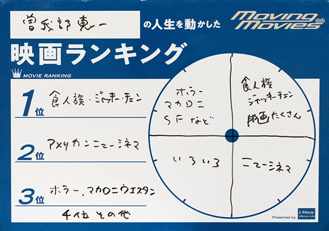 『さんまのスーパーからくりTV』『中居正広の金曜日のスマたちへ』など、数多くの人気番組を手がけてきたバラエティプロデューサー角田陽一郎氏が聞き手となり、著名人の映画体験をひもとく『週刊プレイボーイ』の連載『角田陽一郎のMoving Movies~その映画が人生を動かす~』。
