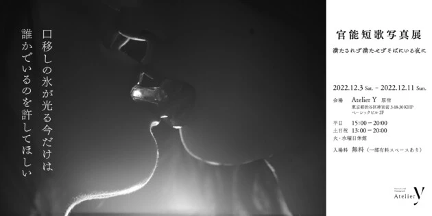 女優・脚本家として活躍する寺田御子(みこ)と、写真家・福島裕二による官能短歌写真展『満たされず満たせずそばにいる夜に』が、東京・アトリエY原宿で12月3日(土)から11日(日)まで開催されている。
