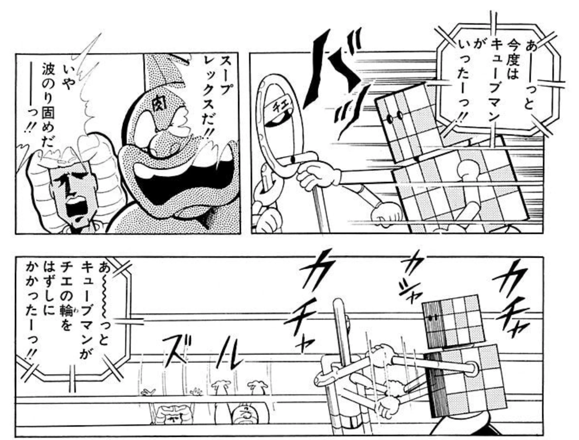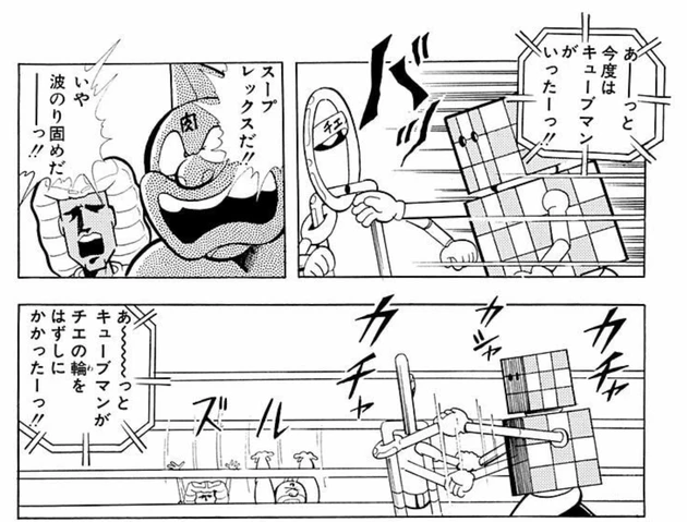 かわいい系超人のツートップ、チエノワマンとキューブマン。第20回超人オリンピックでのふたりの対戦は、かわいい系超人史に残る名勝負かと!