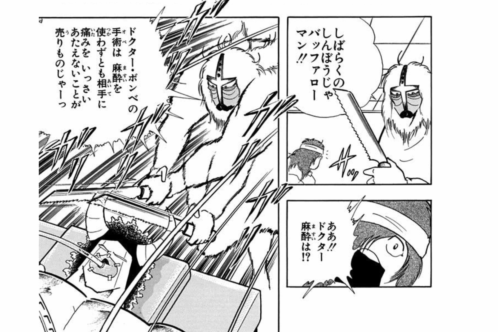 中西 でも、超人医療従事者としては優秀で、ケガや病気の超人にはクスリを調剤するケアを怠りません。あと、もともとはドクターボンベの同僚だったのですが、「なにがボンベの手術は麻酔なしでも痛みを感じないや。あんなんバッファローマンが我慢しとるに決まっとるやろ!!」と、超人界で唯一ドクターボンベの医療を批判した男として一部では評価が高いです。