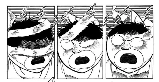 思い起こせば、かつての超人オリンピック決勝戦、ウォーズマンにマスクをはがされそうになったキン肉マンは、何枚もマスクを重ね着してきて素顔を守る「金太郎アメ作戦」でピンチを凌ぎました。どちらかというとギャグ寄りのほっこりした演出です。ですが、今回の身代わり作戦は本格的なサスペンス劇に使われても遜色のない演出で、緊迫感バリバリ継続のまま試合は続行していきます。ここはギャグ漫画から王道のストーリー漫画へと変質を遂げていった本作の歴史を感じられる、貴重な一場面でもあると僕は思います。