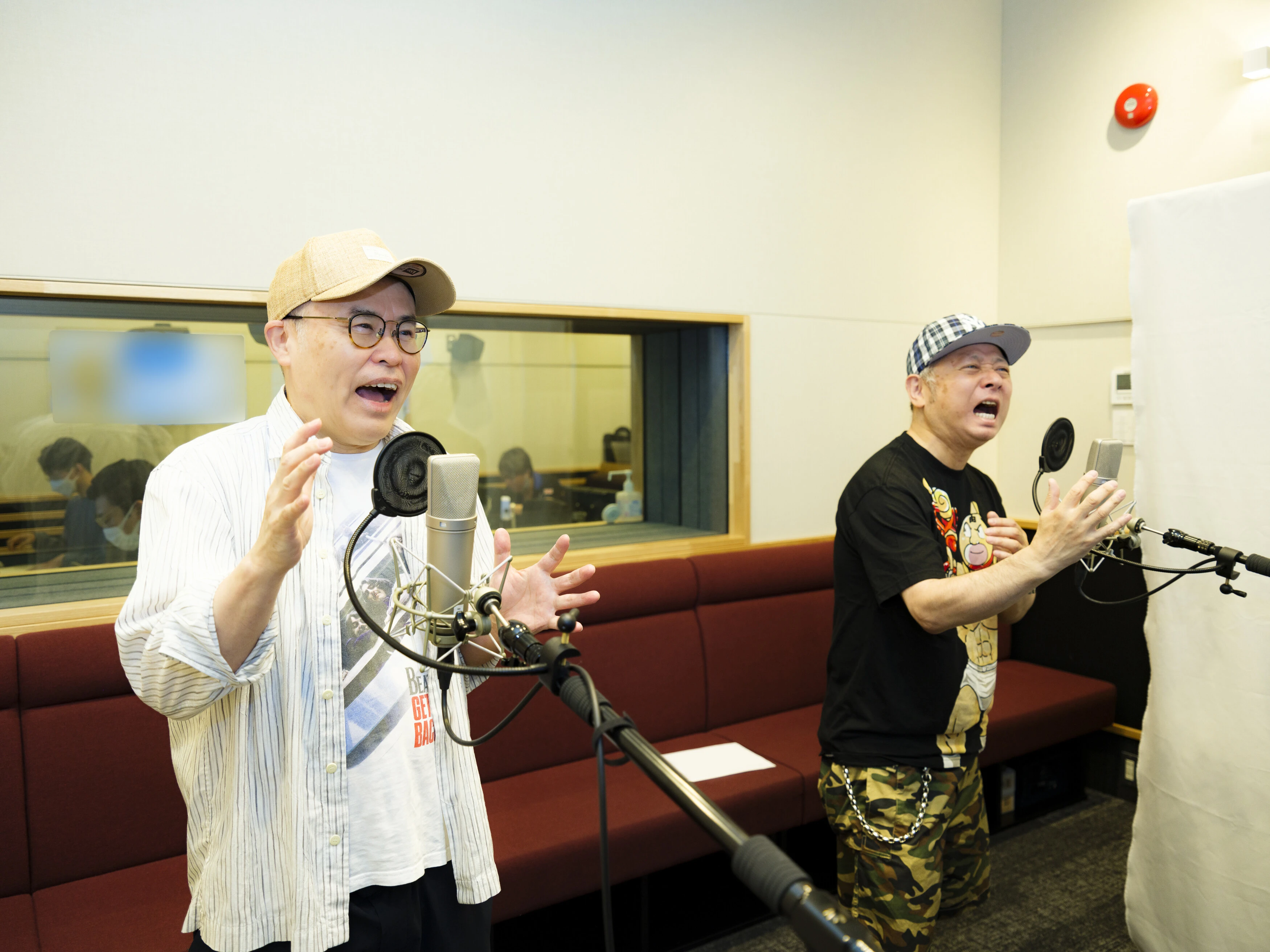 スタッフ陣がいるコントロールルームで収録を見守るゆでたまご先生