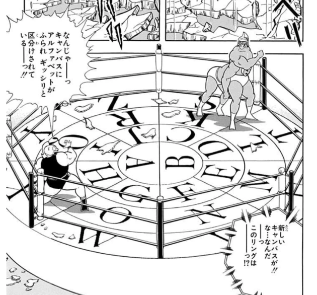 始まった運命の初戦、いきなりキン肉マンが出るというのも大きなサプライズでしたが、それ以上に僕が衝撃を受けたのが"魔方陣デスマッチ"というあまりに時代を先取りしすぎた対戦方法でした。試合中に条件をクリアすることで様々な強化アイテムを得ていくという、過去から現在まで含めても最もトリッキーにして情報量の多い一戦だったのではないでしょうか。