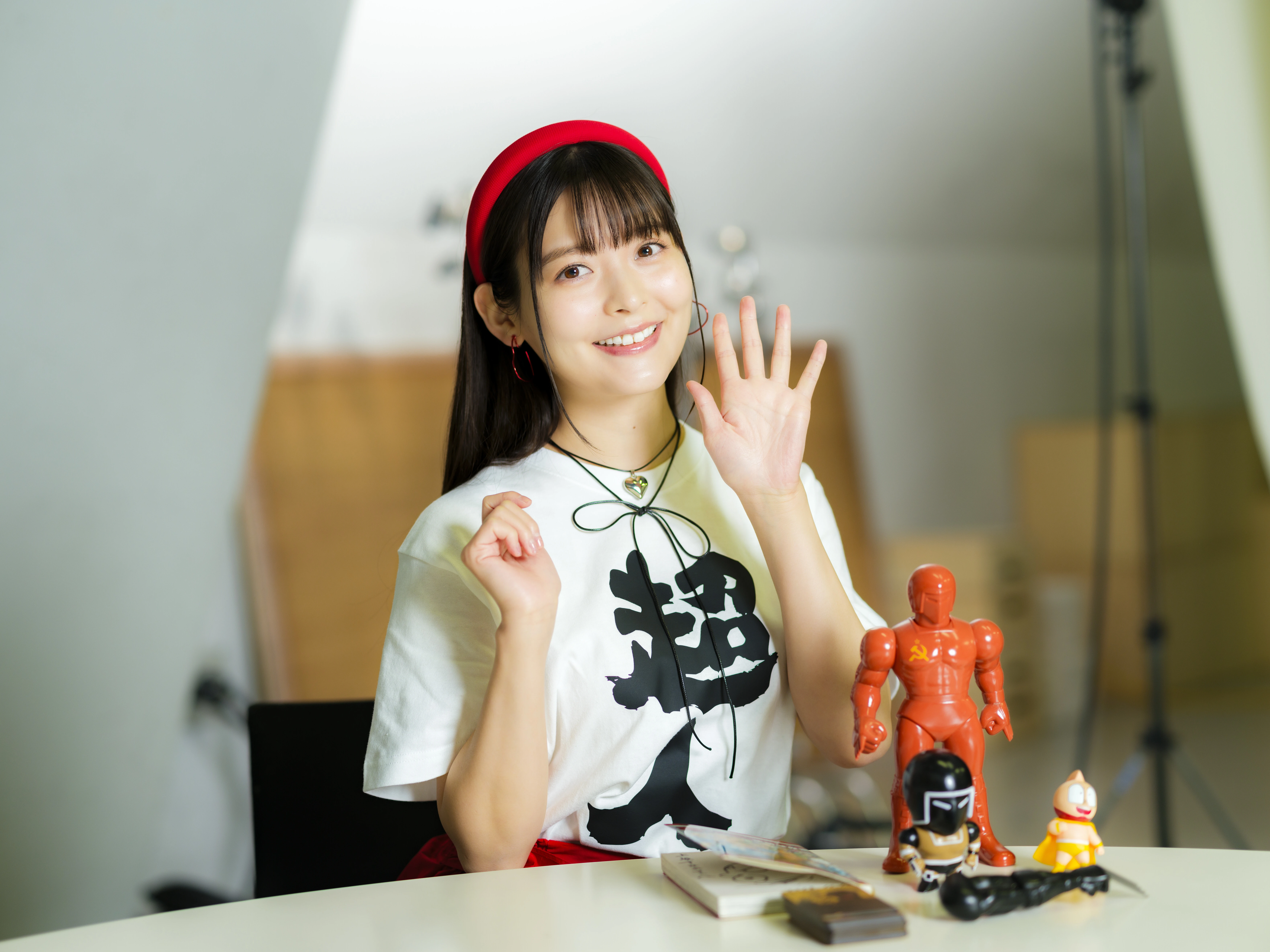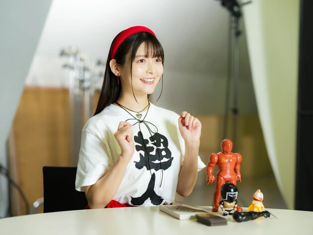 TVアニメ『キン肉マン 完璧超人始祖編』でミートくん役が決まった上坂すみれ。大好きなウォーズマングッズとともに